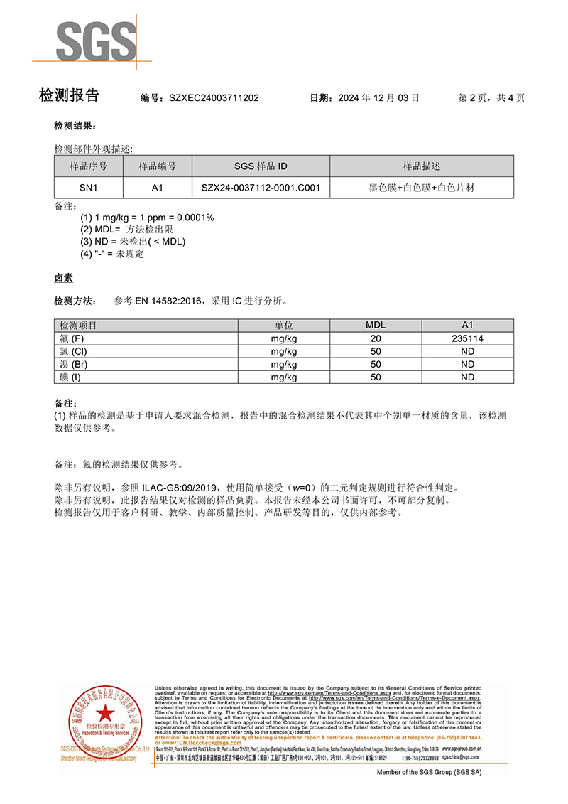 > 黑色防水透聲膜/白色防水透氣默默/白色透氣貼SGS檢測報告